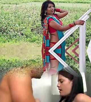 Bengali Bhabhi, wearing a maxi, pressed her hooters a bunch and quenched the itch of her pussy.