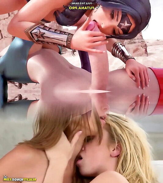 Superwoman with big dick and tits fucked Wonder Woman and cumshot on her face