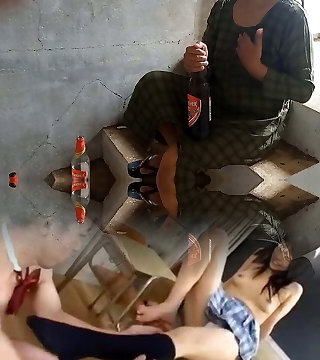 Desi local rendi outdoor guzzling beer pissing beer bottle